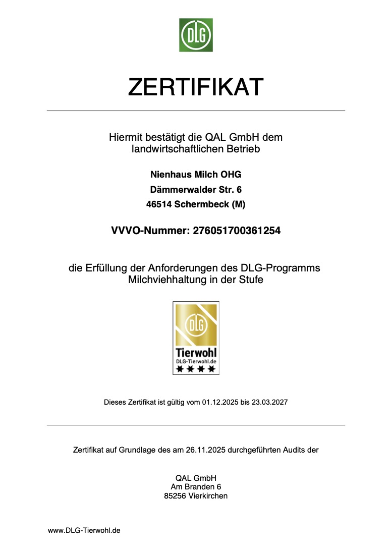 Einmal täglich erhalten die Kühe ihre Tagesration der Mischration (Gras, Mais, Getreide, Mineralien und Eiweißergänzer). Ein Großteil des Futters ernten wir von unseren Acker- und Grünflächen. Die größeren Kälber erhalten zweimal am Tag ihre Rationen und die jüngsten Milchkälber werden drei Mal am Tag gefüttert. Den älteren Milchkälbern steht ein Tränkeautomat zur Verfügung.